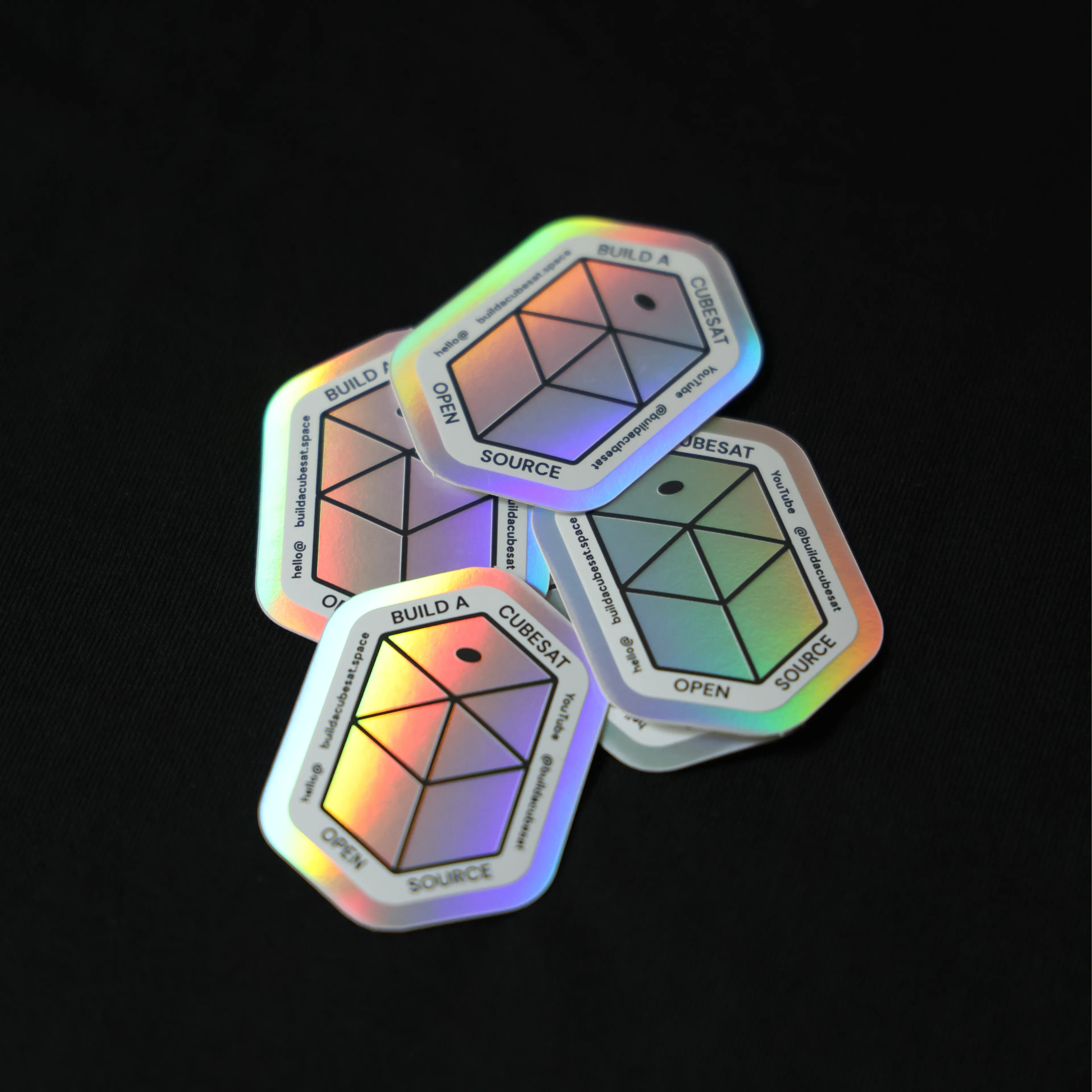 Add some orbit-worthy shine to your gear with these buildacubesat.space holographic stickers. Printed on durable, reflective foil, they shimmer with a full spectrum of color when they catch the light – perfect for laptops, toolboxes, or your next flight case.